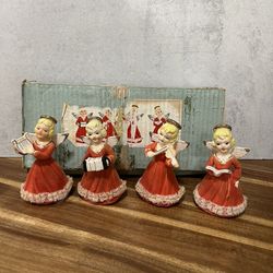 Vintage Set Of 4 Christmas Angel Musicians Or Figurines Red Flocked Japan$125Sacramento, CA