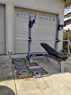 Fully adjustable bench/rack combo with 300lb Olympic weight set barbell and clips$1,200Lodi, CA