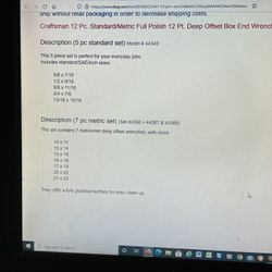 12 Piece Off Set Wrenches $100Elk Grove, CA