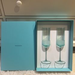 Tiffany&Co Diamond point Champagne Flute in Tiffany blue Brand new come with set of 2$450San Gabriel, CA
