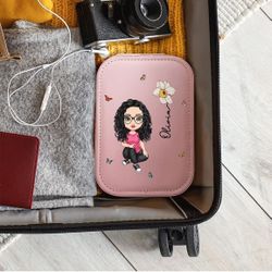 Personalized Travel Jewelry Case - Custom Cartoon Character Birth Flower PU Leather Jewelry Box Storage with Mirror, Birthday Gifts Mothers Day Gifts $15Alhambra, CA