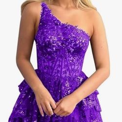 YUAOHUANG Vestido corto de tul con un hombro y lentejuelas, vestido de fiesta con niveles, vestido de fiesta de cóctel con apliques de encaje$30Windsor Hills, CA