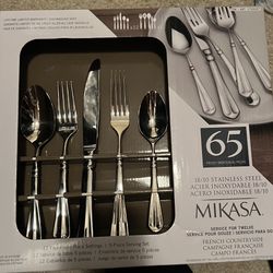 Mikasa, French Countryside Flatware Service for 12, 65 Piece Set, 18/10 Stainless Steel, Silverware Set with Serving Utensils $120Irvine, CA