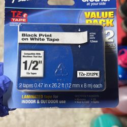 other 1/2 BK/WE TZe Laminated Tape Value Pack - 0.50 Width x 26.20 ft Length - Black, White - 2 / Pack$12Santa Ana, CA