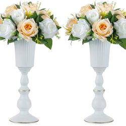 2-piece metal flower vase, white centerpiece, elegant wedding centerpiece, vase for party decoration, anniversaries, ceremonies, 12.6 in high, floral $22Rosemead, CA