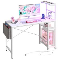 White Computer Desk with Charging Port & LED Strip,42 inch Modern Gaming Desk with Reversible Storage Shelves,Small L Shaped Desk with Hooks for Home $50Anaheim, CA
