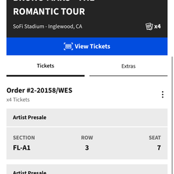 3 FLOOR SEATS Bruno Mars Concert Ticket$1,000West Covina, CA