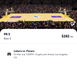 1 Lakers Ticket Section 309 Row 5 $30 $30Los Angeles, CA