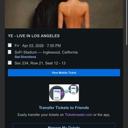 Kanye at Sofi Friday April 3rd$420Long Beach, CA