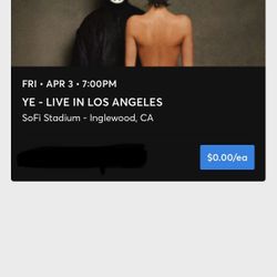 Ye Sofi 4/1 And 4/3 $100 Ticket With Parking Pass Included$100Fountain Valley, CA