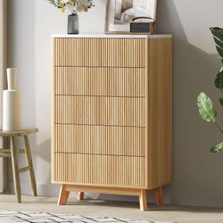 Airynee Fluted 5 Drawers Dresser for Bedroom, 47" Tall Handleless Chest of Drawers with Faux Marble Top, Curved Profile Design, Wood Drawer Organizerf$100El Monte, CA