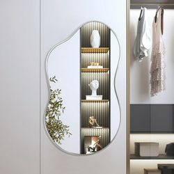 Irregular Wall Mirror 46"x26" Cloud Shaped Mirrors for Bathroom, Silver Aluminum Alloy Frame$45Orange, CA