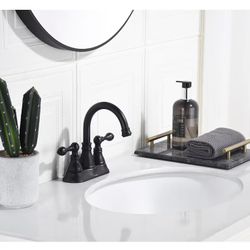 Grifo de lavabo de baño de dos manijas con drenaje emergente, boquilla giratoria de 360°, grifo de lavabo central de 4 pulgadas sin líneas de suminist$47Compton, CA