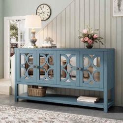 60” Antique Blue Designer Sideboard / Console Table w/ Mirrored Cabinet Doors & Adjustable Shelves & Solid Wood Legs [NEW IN BOX] <Assembly Required>$100City Of Industry, CA