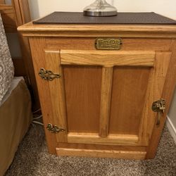 Queen sized bed - oak headboard, frame and mattress with low profile box spring. $100Seal Beach, CA