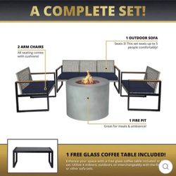 ETHAN 5-PIECE OUTDOOR FIRE PIT TABLE SET FOR PATIO$550El Monte, CA