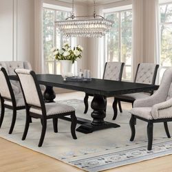 Dining set 7 pc Distressed Noir wood finish, Tan fabric color. New Especial price$2,080Santa Ana, CA