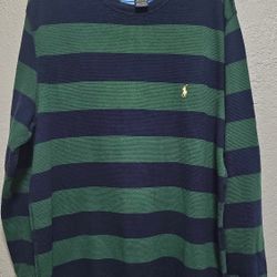 Ralph Lauren POLO 🐎 Green & Navy Stripe Long-Sleeve Shirt~ Size: XL