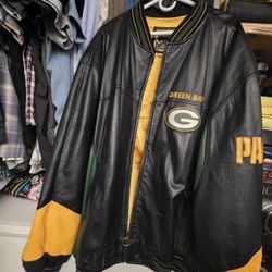 Vintage NFL Green Bay Packers Leather Full Zip Jacket 5XL$100Long Beach, CA