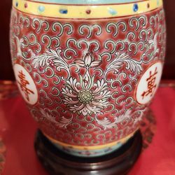 Vintage Chinese Famille Rose Porcelain Red Ginger Jar with Wood Stand$45Los Angeles, CA