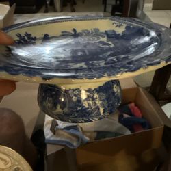 “Blue transferware style pedestal compote, Italian scene, vintage decorative serving dish”$30Anaheim, CA