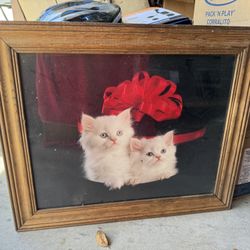 vintage framed art of two white Persian kittens sitting on a red bow hat box $25Torrance, CA