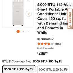 Portable Air Conditioners 8000 BTU,Quiet Portable AC Units for Rooms 3-IN-1 Cools Up to 500 Sq.Ft with Dehumidifier,Fan,Remote Control,24H Timer,Sleep$120El Monte, CA