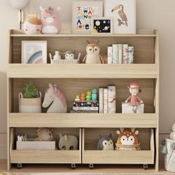 Toy Storage Organizer, 46'' Toy Shelf, Bookshelf with White and Blue Bookcase & 2 Storage Cubbies$80Santa Ana, CA