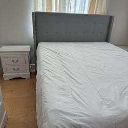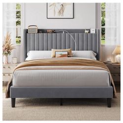 Queen Bed Frame with USB Charging Station and Storage Shelf/Upholstered Headboard Platform Bed with Wing Side/Wooden Slats Support/Noise Free/No Box S$120Torrance, CA