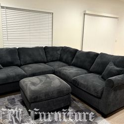 Stylish Sectional Sofa With Ottoman Black Fur- Like Jumbo Corduroy New$529Norwalk, CA