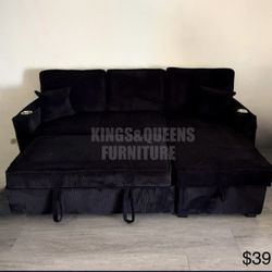 ✅️✅️4 pc Black corduroy fabric sectional sofa with storage chaise and love seat and pop up sleep area in center USB charging✅️✅️✅️$698Long Beach, CA