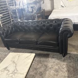 Black Tufted Faux Leather Chesterfield Sofa – Modern Classic Style$300Westminster, CA