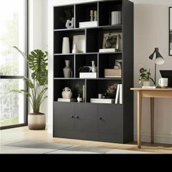Black Bookcase Shelf w/ Cabinet Doors | 65" Tall | 12 Cubbies$100Irwindale, CA