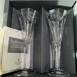Two Vintage Waterford Crystal Heart Love Toasting Champagne Flute Milinium Glass$55Irvine, CA