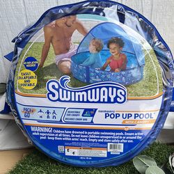 Swimways Elite - Piscina desplegable sobre el suelo, piscina para bebés con toldo y funda de transporte, piscina plegable para niños de 9 a 24 meses,$24Paramount, CA