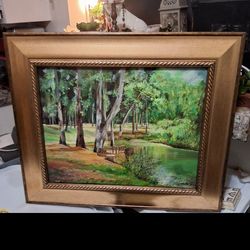 Large Signed Original Oil Painting — Forest River Landscape — 27×23 in (Frame)$140Westminster, CA