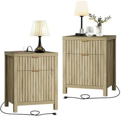 OAKHAM Farmhouse Nightstands Set of 2, Boho End Table with Drawer and Open Shelf, Bedside Table$129Los Angeles, CA