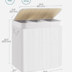 SONGMICS 39.6 Gallons (150L) Laundry Hamper 3-Section Basket Hamper w/ Lid - White$38San Gabriel, CA