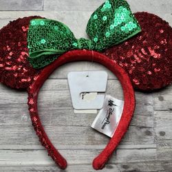 Disneyland Red Sequined Green Bow Ears Christmas $50Cypress, CA