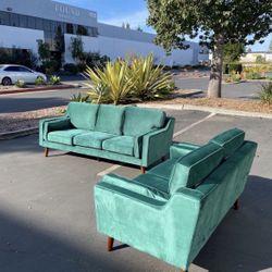 New Set Only! $385!! Velvet Sofa, Modern 3-Seat Couch (80") And Loveseat (59") In Green$385Fullerton, CA