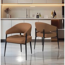 Set of 2 - Brown PU Leather Metal Accent Armchairs / Side Chairs [NEW] **Retails for $270 <Assembly Req> $140Hacienda Heights, CA