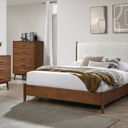 Mid-Century Modern Walnut Queen Bed w/ Uph. HB w/ LED Reading Lights, Mirrored Dresser and Nightstand / 4-piece$1,689Santa Ana, CA