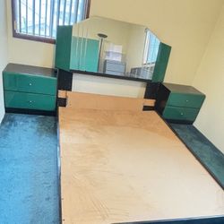 Vintage green mirror headboard bed frame with matching drawers/nightstands$300Rosemead, CA