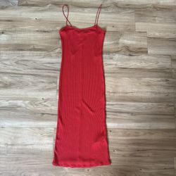 Forever 21 Vibrant Red Midi Dress Ribbed Spaghetti Strap Stretchy Bodycon$10Compton, CA