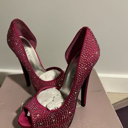 Madison by Shoedazzle “Balwin” Zip Heel Women’s Faux Gems / Diamonds Sz 6.5 Used. This are a Stunning Platform 1”1/2 Heels 5” Height Candy Pink With$35Beverly Hills, CA