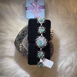 Silver Bracelet / Pulsera De Plata With Esmeralda’s $110Long Beach, CA