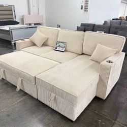 Sectional Sofa With Pullout Bed & Storage Ivory Corduroy $375Beverly Hills, CA