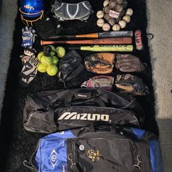 collection of baseball and softball gear including bats, helmets, balls, and gloves.$200Tustin, CA