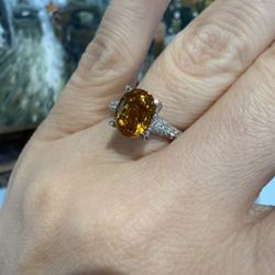 18K White Gold Natural Citrine And Diamonds Beautiful Ring $995Seal Beach, CA