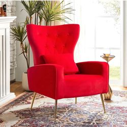 Velvet Accent Arm Chair, Mid-Century Modern Living Room Chair, Wingback Bedroom Side Chair with Gold Legs & Pillow, Button-Tufted, Red$120Carson, CA